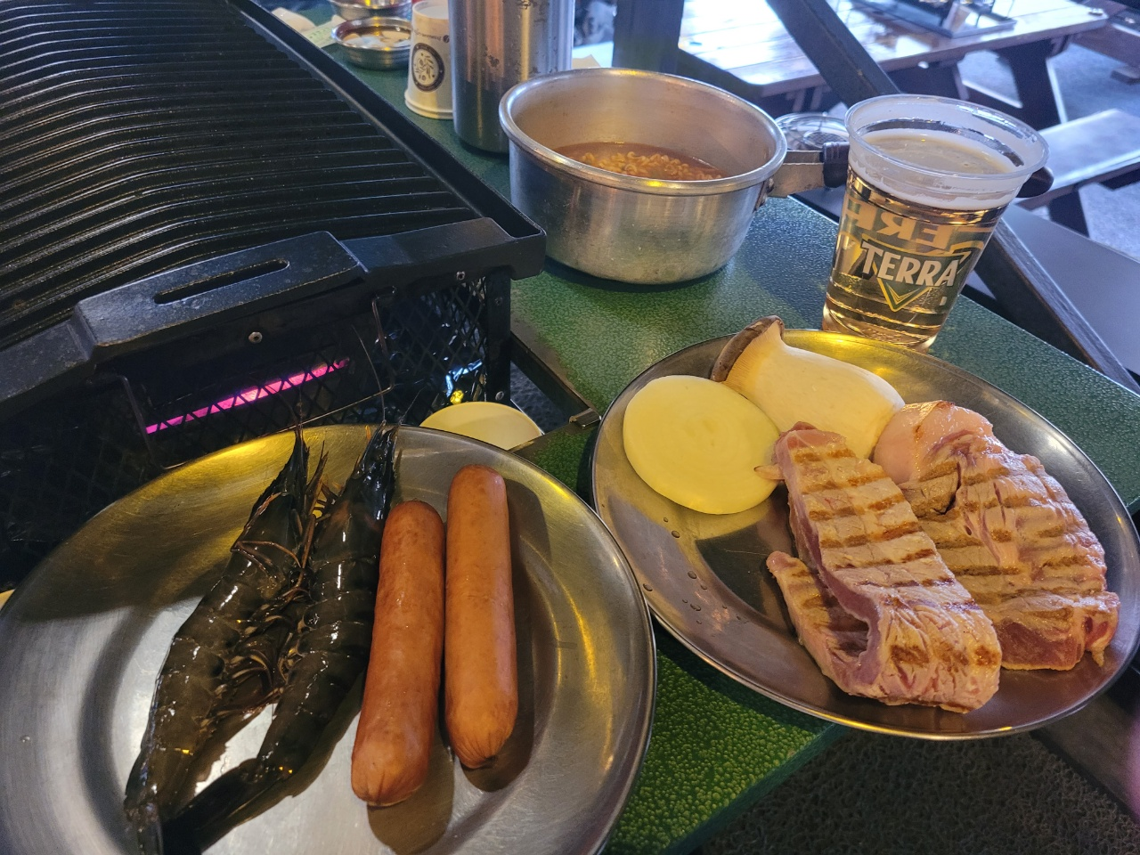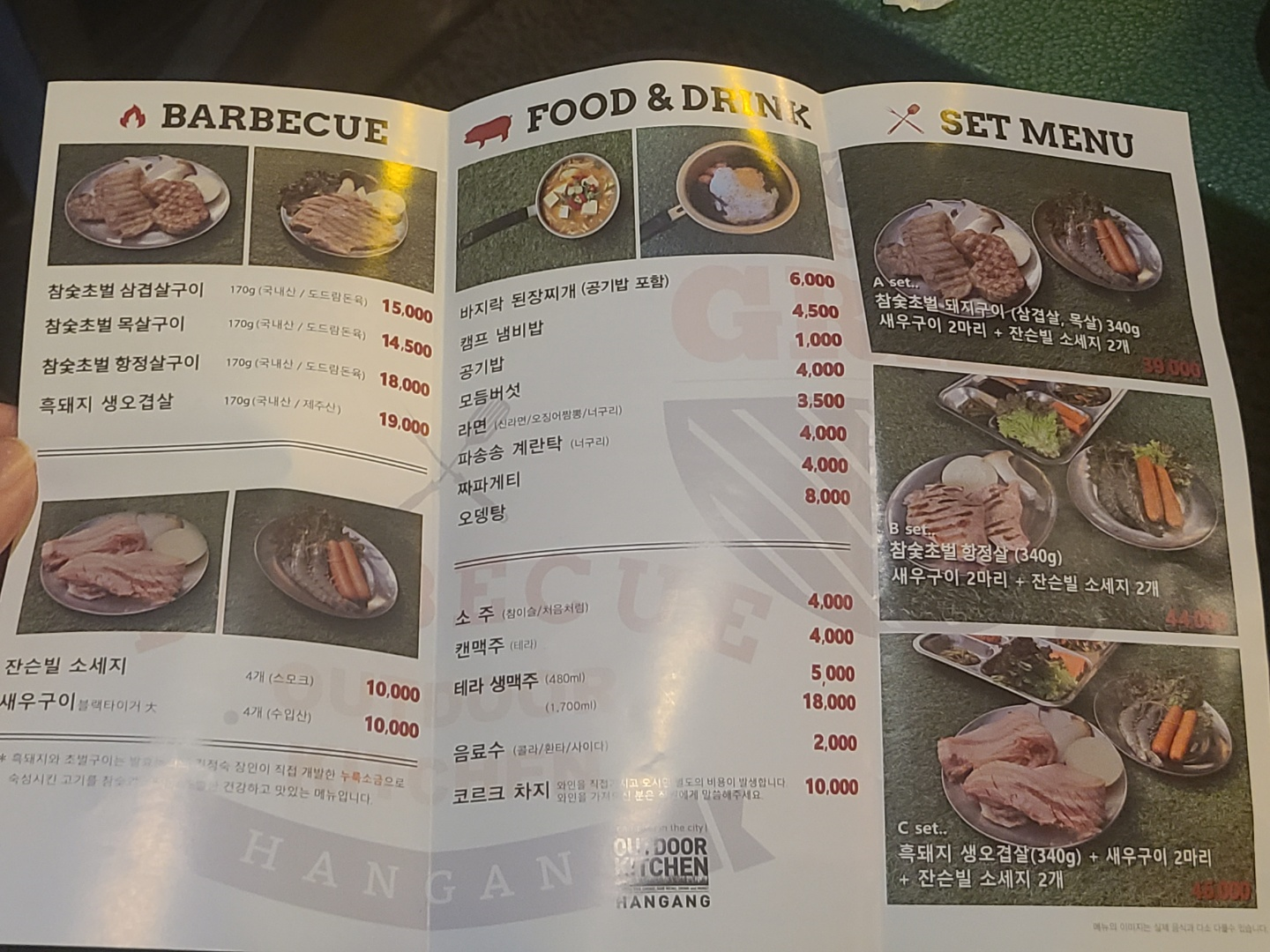 엄청 싸다? 이러는건 아니고 정말 적당한 가격에 맛있는 고기를 먹은 느낌입니다. 분위기는 캠핑 느낌이 나서 말할것도 없고 청결을 왜 GOOD을 드렸냐면 불판 옆으로 고기가 빠져서 한번 봤는데 안에 기름때나 그런거 없이 정말 깔끔하게 닦아놨더라구요. 그점이 기억에 남아 GOOD을 주었습니다.
