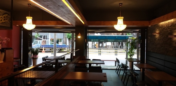 입구는 요렇게 생겼습니다. 주차자리는 아예 없으며 바로 앞에 버스정류장도 앞에 있고 갓길주차 또한 힘들기때문에 차는 절대 비추천합니다.(대학생들이 주타깃이고 술집이기때문에 주차는 크게 상관없을거라 생각합니다)