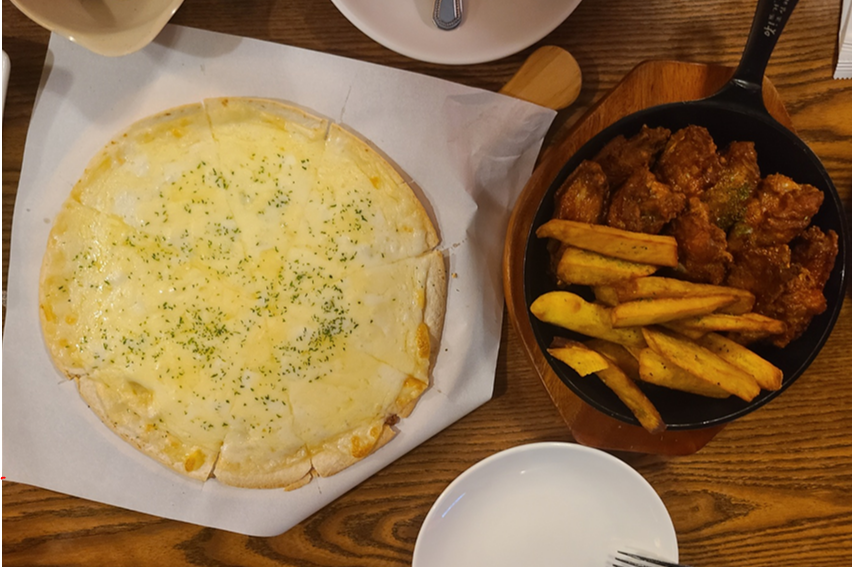 안주 사진입니다. 먼저 말씀드려야할부분은 윙과 같이 나온 튀김인데요 저건 감자가 아니라 고구마입니다. 저도 먹고나서 여기 감자튀김은 고구마맛이 난다고 여자친구한테 말했는데 여자친구가 먹어보고 "이건 고구마잖아"라고 여자친구가 말해서 살짝 민망했습니다. 오히려 감자튀김보다 색다르고 맛도 좋았습니다. 감자튀김이랑 다르게 맛있다는거지 취향차이로 갈릴 수도 있습니다. 윙은 평범한 윙이였습니다. 냄새에 저엉~말 민감한 분은 못드실수 있는데 제 기준으론 대부분의 사람들이 맛있게 먹을 수 있다고 생각할 정도의 맛이였습니다. 그리고 마지막 고르곤졸라피자는 역시라는 생각이 들었습니다. 이 선택은 늘 실패를 하지않아요 ㅋㅋㅋㅋㅋㅋㅋㅋ 그냥 제일 무난하고 맛있는 PICK인거같아요