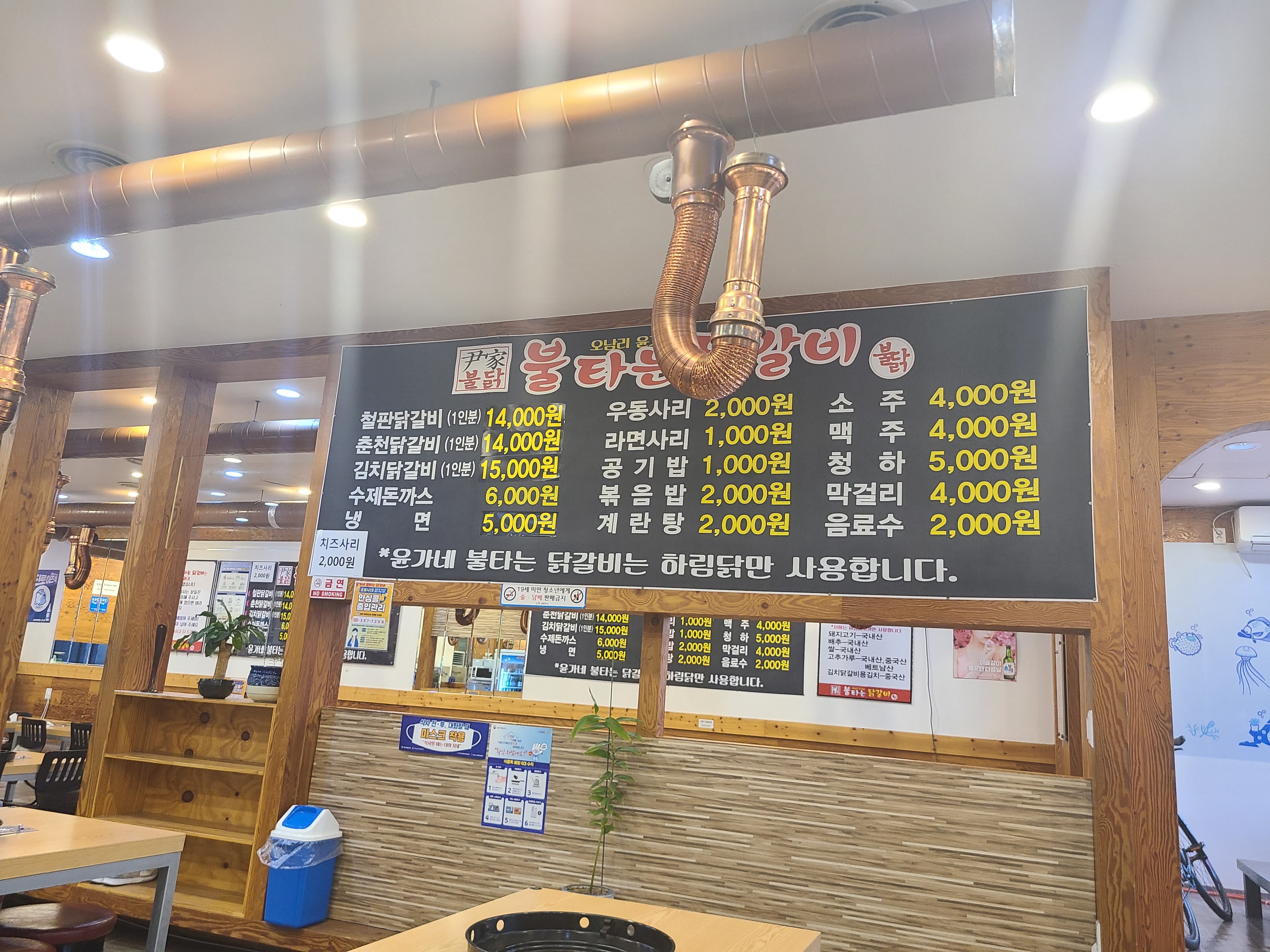 메뉴판입니다. 저희는 철판닭갈비 2인분과 우동사리, 계란탕 그리고 콜라 하나를 시켰습니다.