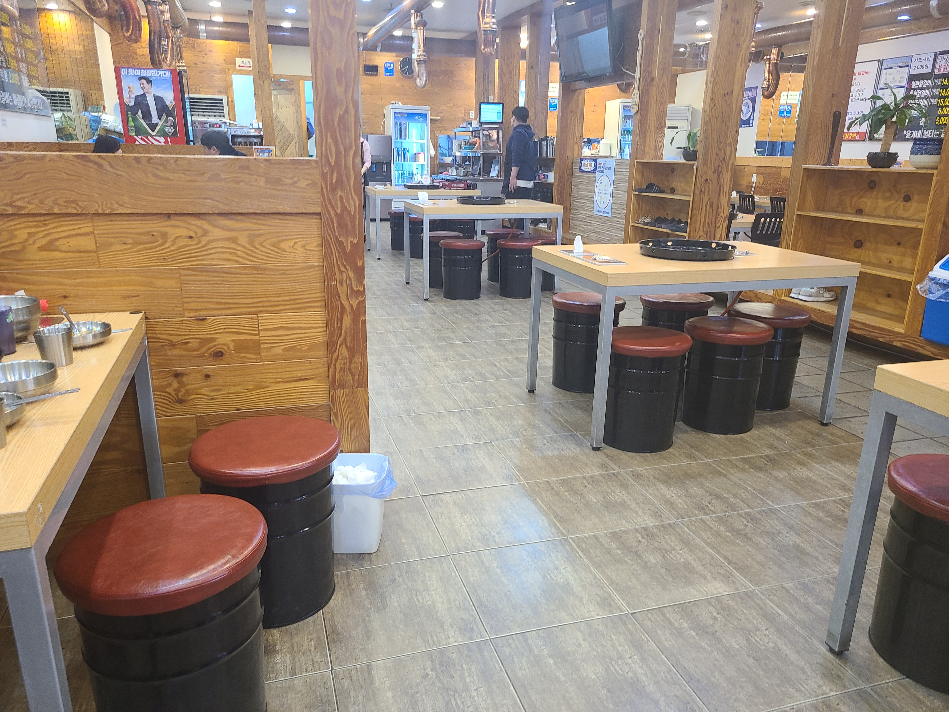 매장 자리는 넓은편입니다. 지금 보이시는 입식 테이블 외에도 옆에 방에는 좌식테이블이 많이 있습니다. 이정도면 단체 손님을 받아도 충분하다고 생각합니다. 하지만 6인~8인 정도를 받는 개인 룸은 없습니다.