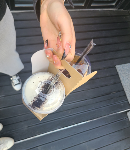 저희는 일정상 카페에서 마시지 못하고 테이크아웃을 했어요 ㅎㅎㅎ카페에서 먹으면 좀 더 이쁘고 맛있게 해주실 수 있으셨다고 하셨습니다. 만약 방문하셔서 여유가 되시면 카페에서 디저트랑 같이 드셔보시길 추천드립니다!