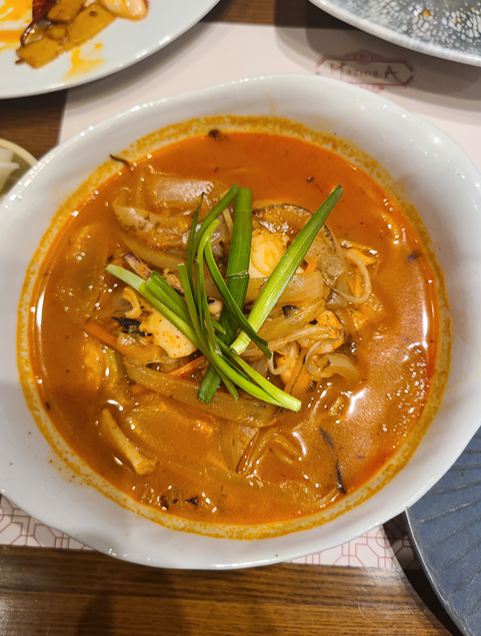 해물짬뽕이 나왔습니다. 14000원 치고는 양이 적다고 생각하실 수 있는데 실은 이게 하나를 시켜도 두개로 나눠달라고 요청하실 수 있습니다. 그래서 저런 짬뽕을 여자친구와 저 각각 받아서 먹었습니다. 짬뽕은 딱 맛있는 짬뽕입니다. 육수가 진하고 해산물이 많이들어간 그런 짬뽕입니다. 국물이 진하니 국물을 꼭 드셔보시길 추천드립니다