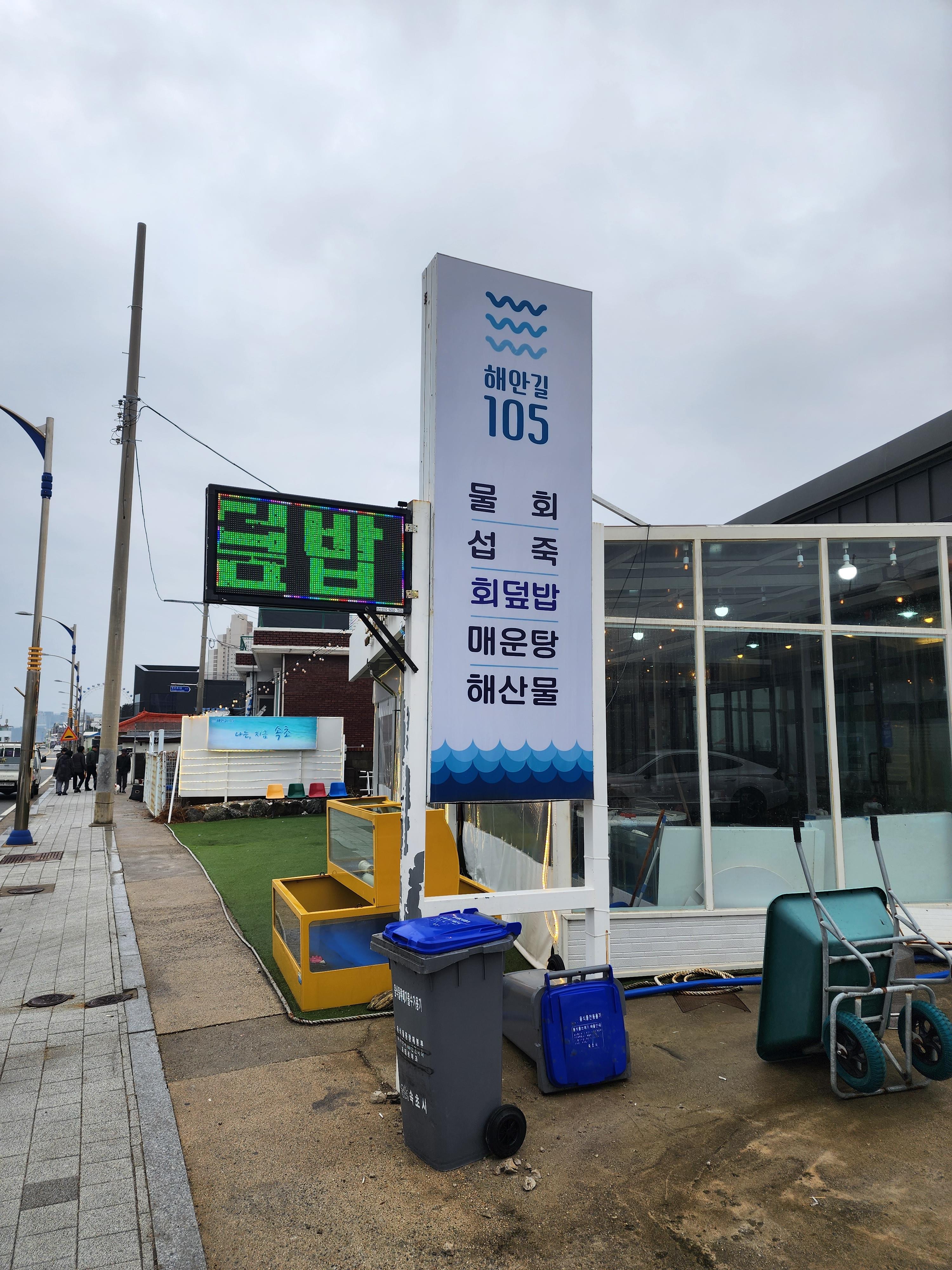 이번엔 새해 해돋이를 보려고 속초를 다녀왔는데요 1월 1일 아침에 집으로 가기전에 아침겸 점심식사를 하고자 물회집을 찾아봤습니다. 저는 대게랑 회를 주로 팔면서 물회를 파는 곳보다는 물회를 주로 파는 곳을 찾아봤는데요 그러던중 해안길 105를 알게되었습니다.