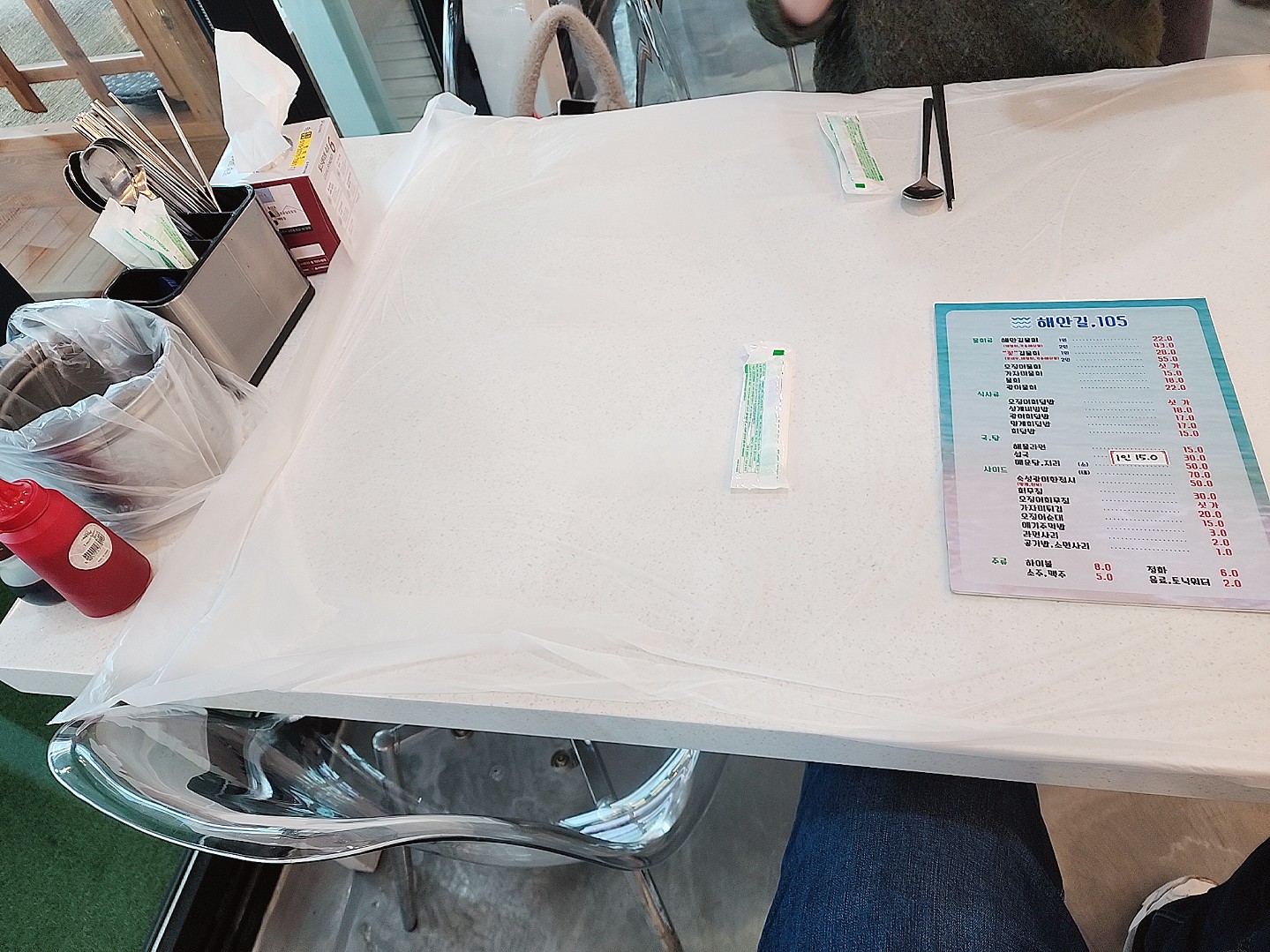 테이블은 옆에 초장 및 식기, 휴지등이 있습니다